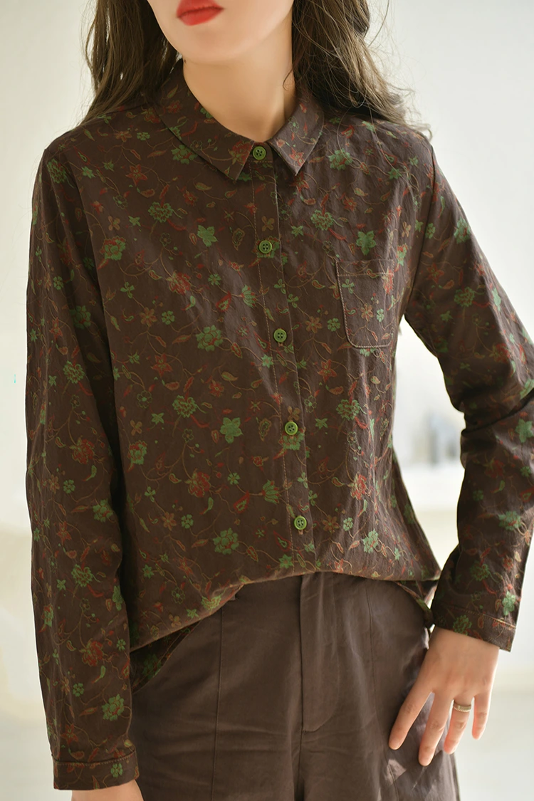 Pour que les vêtements soient agréables à porter, la première chose à considérer est le tissu. Le chemisier décontracté à imprimé floral pour femme est composé à 100 % de tissu pur coton de haute qualité, qui est le tissu le plus populaire sur le marché pour les saisons de printemps et d'automne. Il répond parfaitement aux exigences fondamentales des acheteurs en matière d’articles confortables et pratiques. Le tissu en pur coton a une excellente respirabilité et une absorption exceptionnelle de l'humidité. Il vous permet de vous sentir frais et de ne pas transpirer au printemps et en automne, est doux pour la peau et ne provoque aucune irritation, convient aux personnes de tous types de peau et même après une longue utilisation, il n'y a aucune gêne. Cela peut améliorer considérablement l’expérience de port des consommateurs finaux. En même temps, le tissu en pur coton est très résistant, durable et lavable. Après un lavage quotidien, il ne perd pas de fibres, ne se déforme pas et ne se décolore pas. Les motifs imprimés peuvent rester clairs et complets pendant longtemps et aucun entretien complexe n’est nécessaire. Cela réduit considérablement les coûts après-vente pour les acheteurs. L'épaisseur du tissu est parfaite, ni trop fine ni trop épaisse, adaptée pour un usage unique, une superposition et d'autres styles vestimentaires. Il peut répondre à des scénarios quotidiens occasionnels et également répondre à des besoins de déplacements légers, élargissant ainsi les scénarios de vente pour les consommateurs finaux.