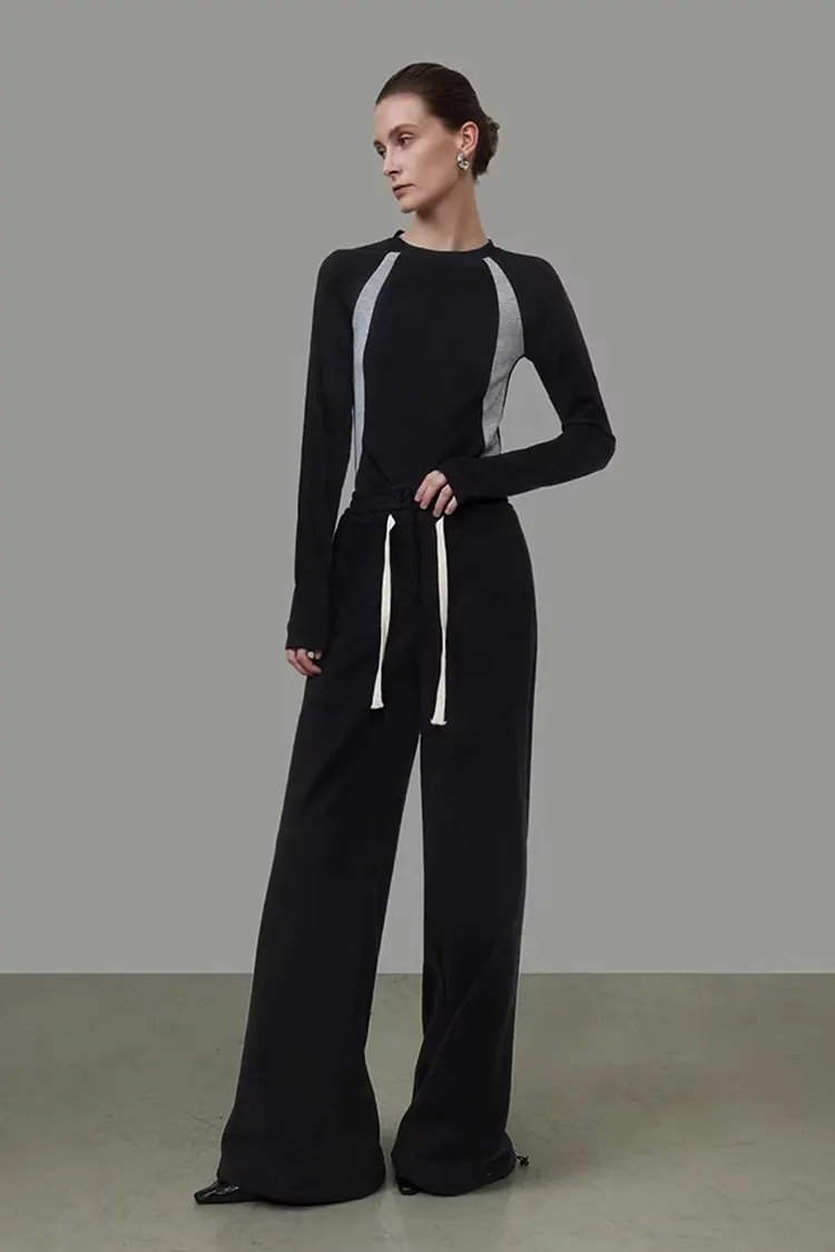 Nous adoptons le style de pantalon large en forme de micro A et la coupe tridimensionnelle 3D. Après de multiples ajustements de détails, la forme s'adapte mieux à la morphologie asiatique. La conception du haut taille haute et taille large soulève efficacement la taille, combinée au cordon de serrage tombant naturel, est simple et soignée sans être encombrante. La forme du pantalon a un effet important sur la taille, l'abdomen, les hanches et les jambes, peut s'adapter à différents types de corps et peut facilement présenter une proportion élancée et un tempérament élégant.