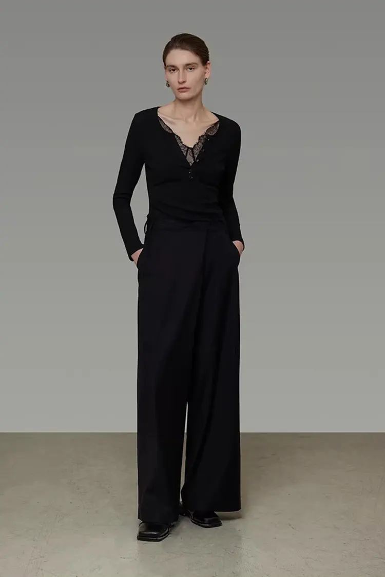 La couleur principale du pull slim à col en V en dentelle pour femme est le noir classique. Il est à la mode, polyvalent et intemporel, et a un fort effet amincissant visuel, vous permettant de présenter sans effort une silhouette soignée et élancée. Le noir ne dépend pas du teint ni du style et a une acceptation terminale extrêmement élevée. Dans le même temps, il prend en charge la personnalisation complète des couleurs et peut être ajusté de manière flexible en fonction des exigences de la marque et des préférences du marché.