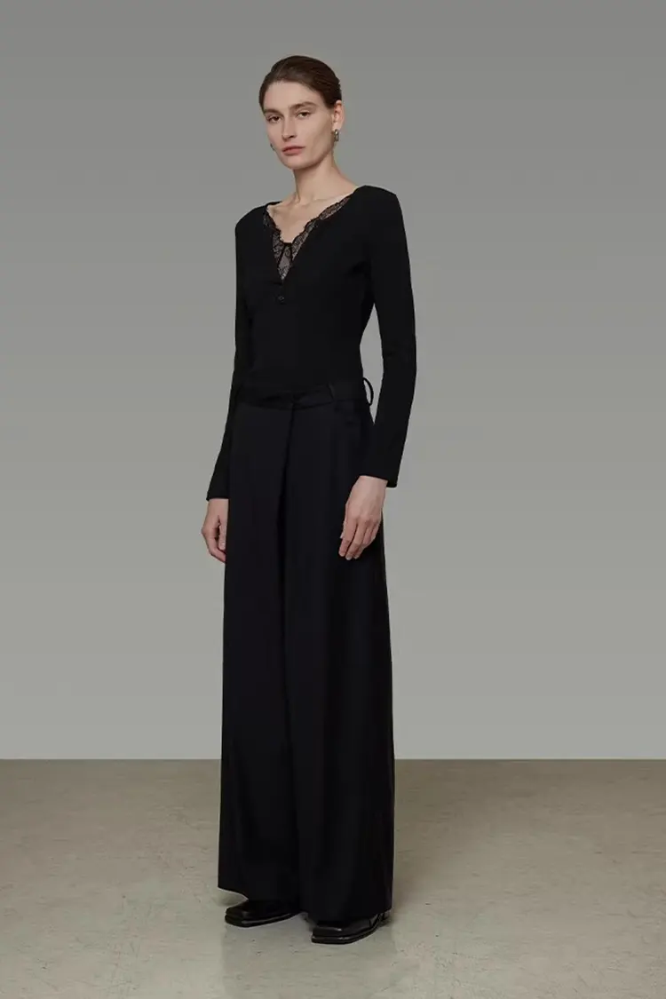Le décolleté est décoré d'une bordure en dentelle exquise, ajoutant douceur et romantisme à la robe noire classique, éclaircissant efficacement l'apparence générale et rendant le style de base plus haut de gamme. La matière en dentelle est douce et n'irrite pas la peau. Les bords sont lisses et fins, et il est peu probable qu'ils se déforment ou se recourbent après un port prolongé. Il améliore non seulement l'apparence, mais assure également la praticité, ce qui le rend parfait pour les consommateurs qui apprécient les textures détaillées.