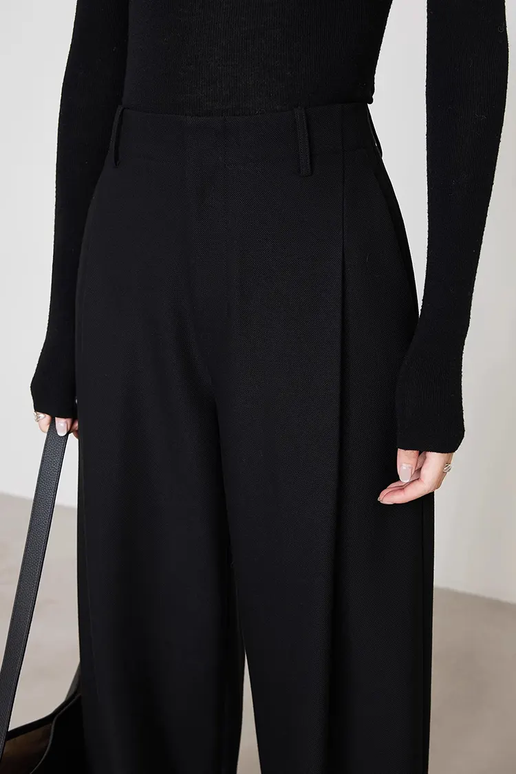 Le pantalon de costume plissé pour femme présente une composition de tissu scientifiquement diversifiée, en particulier 65 % polyester + 20 % viscose + 6 % laine + 6 % lyocell + 3 % élasthanne. Cette combinaison confère au pantalon de multiples avantages, garantissant à la fois des niveaux de texture et de confort de premier ordre. Le tissu a une texture lisse et nette, dégageant une qualité soignée, qui convient parfaitement aux attributs professionnels des pantalons de costume. Il possède également une excellente élasticité, offrant une sensation de confort sans aucune constriction, permettant un port confortable toute la journée et répondant aux besoins des longs trajets sur le lieu de travail. Nous pouvons ajuster les composants du tissu de manière flexible en fonction du positionnement de la marque et des exigences spécifiques des acheteurs, en nous adaptant précisément aux besoins esthétiques et vestimentaires des différents marchés, en brisant l'homogénéité et en aidant les acheteurs à créer des avantages concurrentiels exclusifs, améliorant ainsi l'acceptation des produits sur le marché.