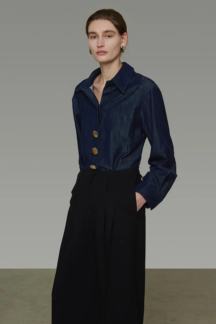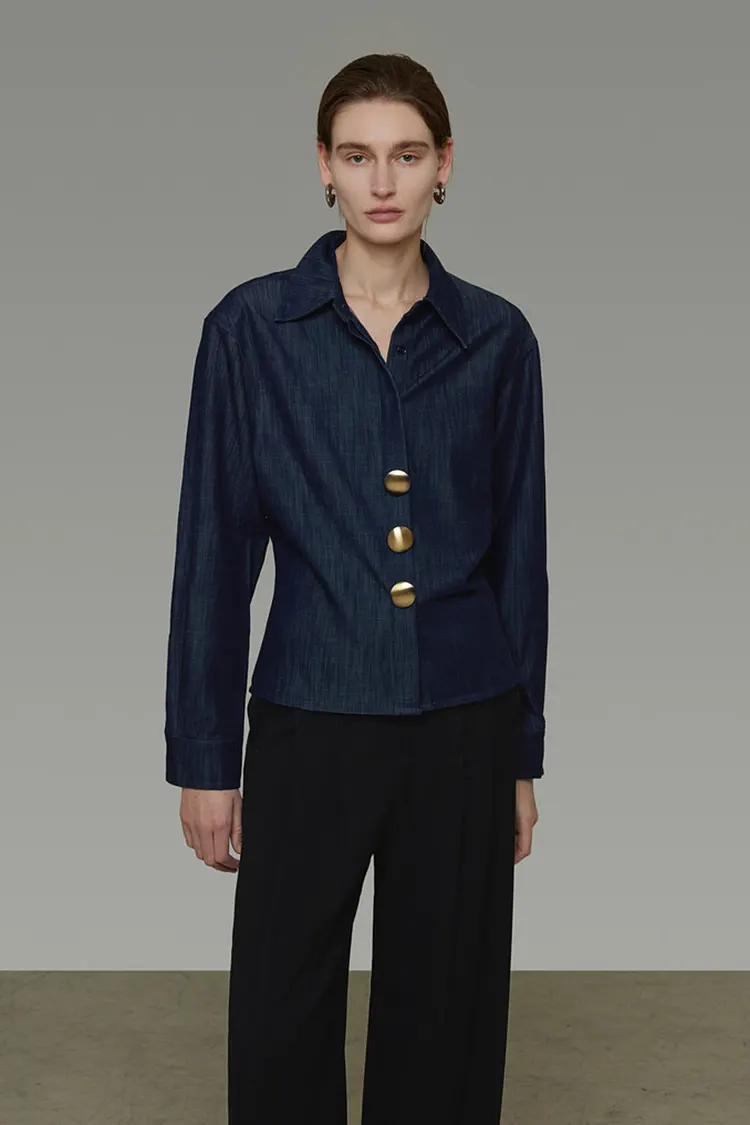 Chemise en jean Vintage pour femmes avec boutons en métal, haut polyvalent à manches longues Simple et exquis