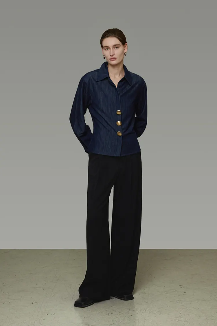 Le chemisier en denim vintage pour femme allie parfaitement charme rétro et détails raffinés. Ses attributs polyvalents sont importants et il peut être facilement associé à divers articles tels que des jeans, des jupes, des pantalons décontractés et des pantalons de costume. Il convient aux déplacements quotidiens, aux sorties du week-end, aux réunions décontractées, aux affaires professionnelles légères et à d'autres scénarios. C'est une pièce classique qui peut être portée toute l'année et qui reste intemporelle, avec un faible risque de vente en gros et un taux de réachat élevé.